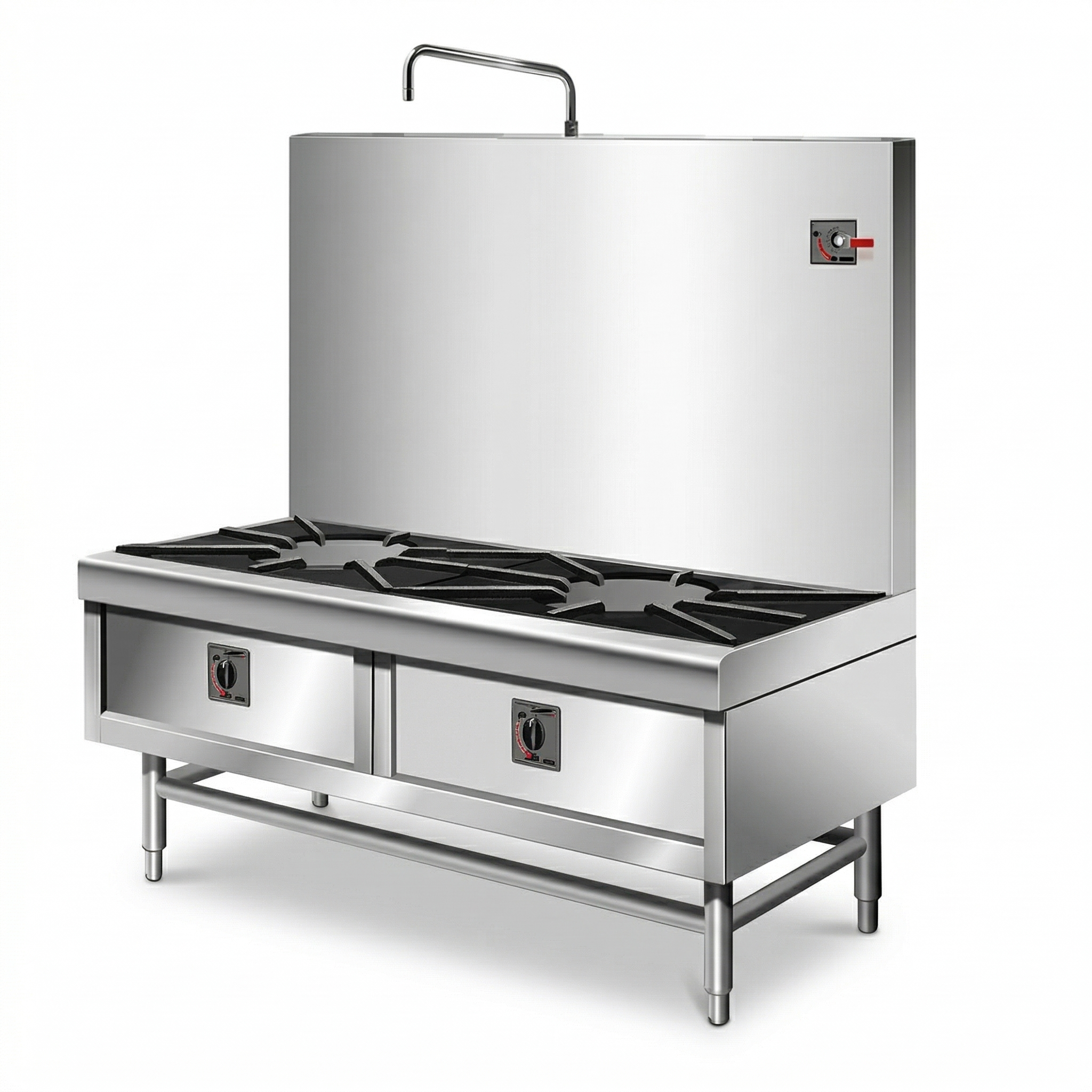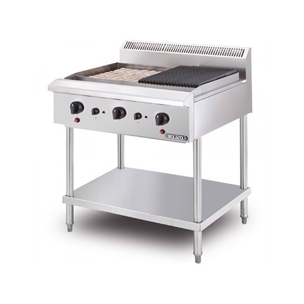 Đặc điểm: Thiết kế dáng thấp chắc chắn chịu được trọng tải nồi khổng lồ tích hợp 2 họng đốt gas độc lập.