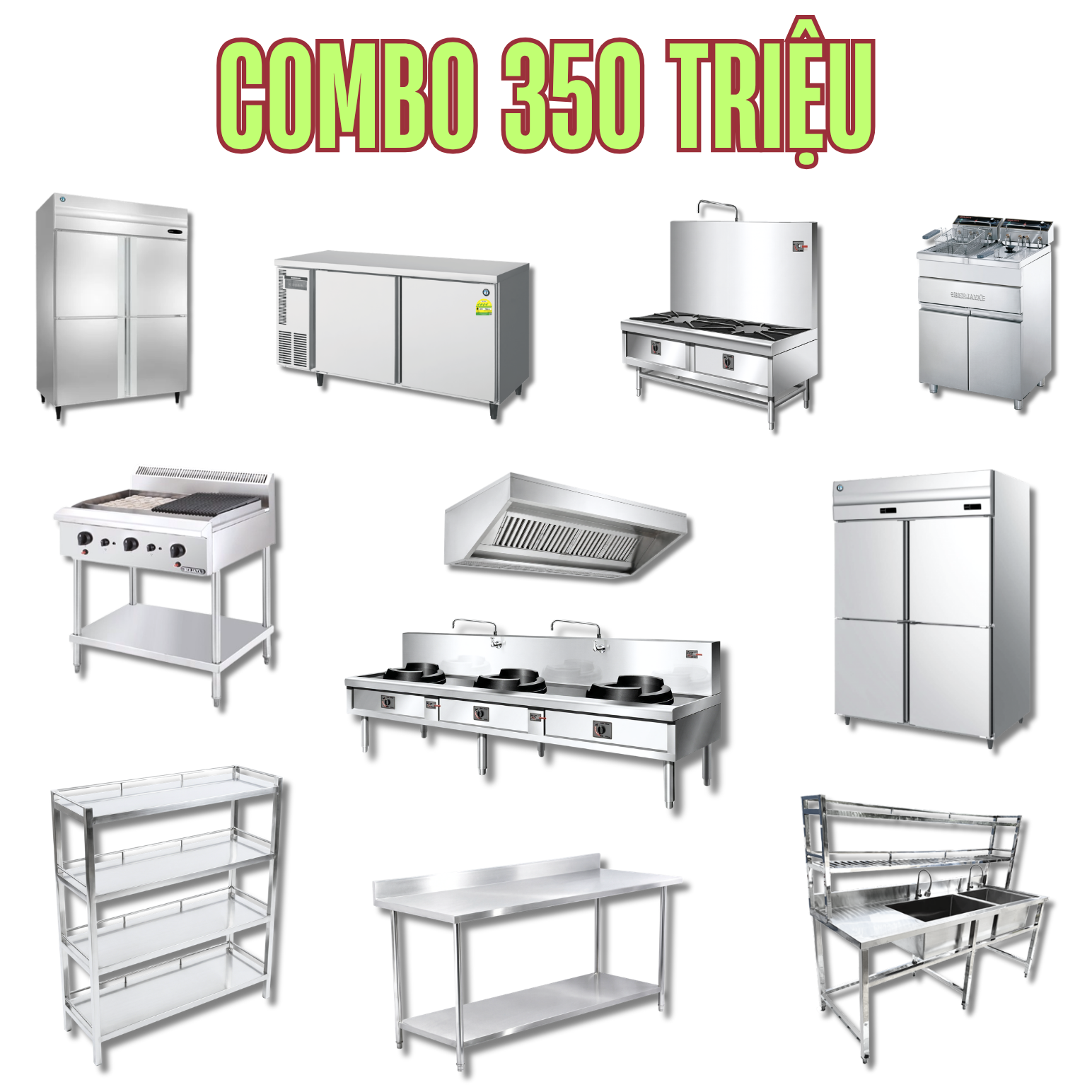 Combo thiết bị bếp chuyên dụng mang đến giải pháp toàn diện và tối ưu nhất cho không gian làm việc của nhà hàng quy mô lớn. Bộ thiết bị bao gồm các sản phẩm chất lượng cao sau đây: