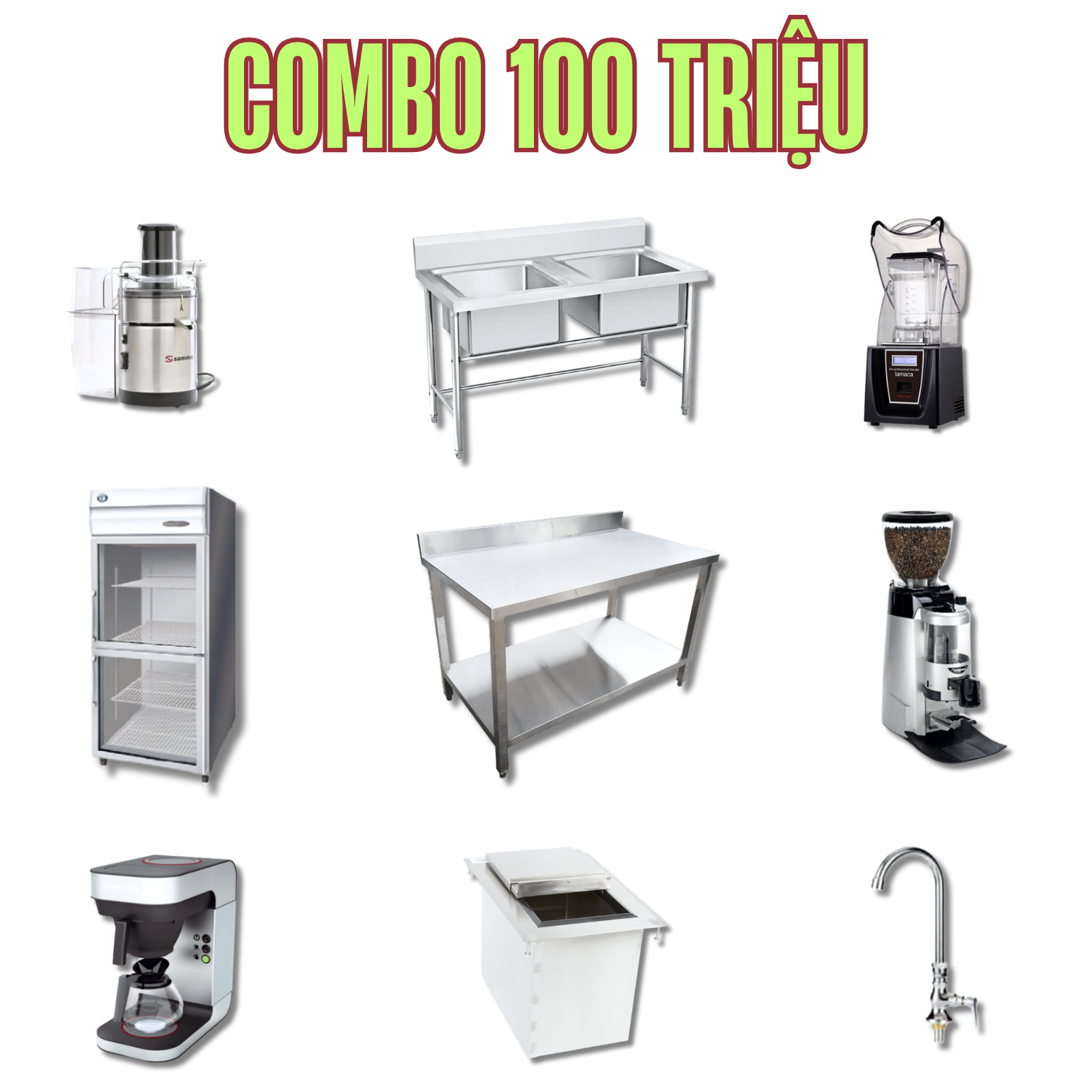 Combo thiết bị quầy pha chế mang đi mang đến giải pháp tối ưu cho mô hình kinh doanh thức uống mang đi. Bộ sản phẩm bao gồm đầy đủ các thiết bị chuyên dụng cần thiết để vận hành một quầy cafe và trà sữa hiệu quả, bao gồm: